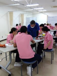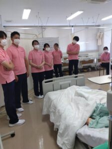 グループで立てた計画を元に患者さんから情報収集を行い、上手く出来た点、出来なかった点をを振り返り学びを深めました。